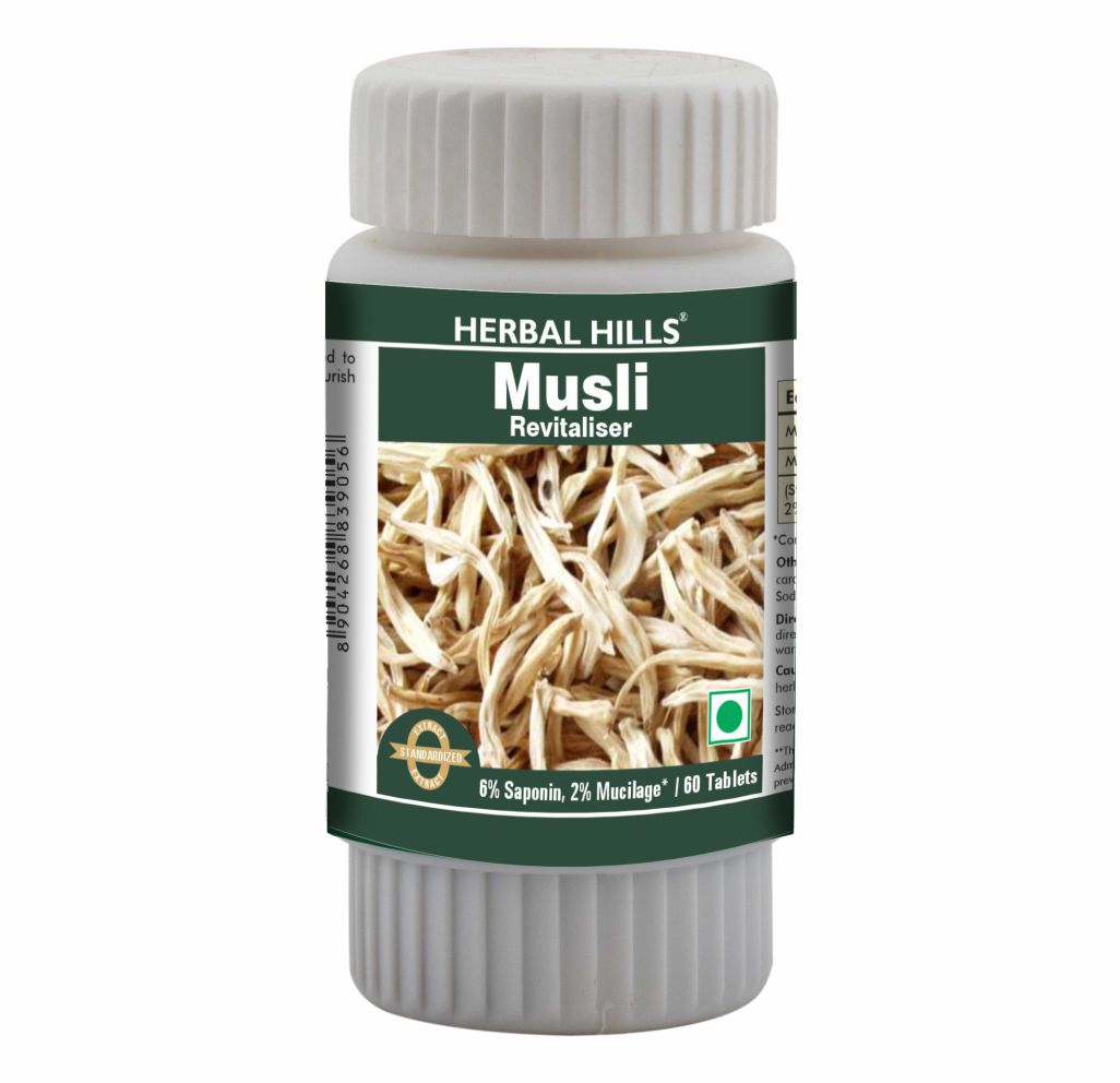 Herbal Musli 60 Tablets Safed Musli / Musali powder (chlorophytum borivilianum) 500 mg extract & powder in a Tablets to Restore Potency and Acts as Revitalizer
