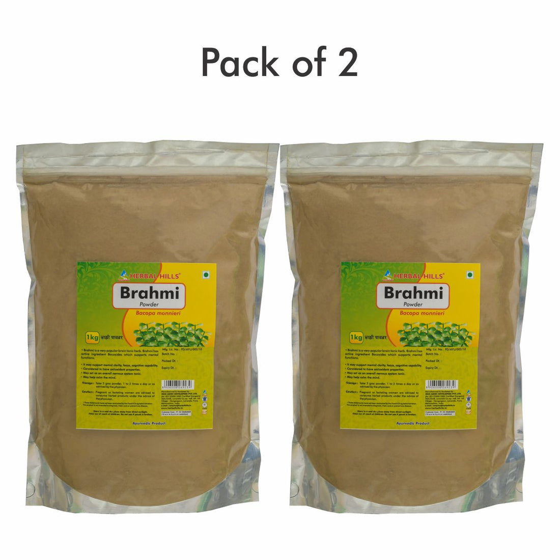 Herbal Hills Brahmi Powder - 1 kg powder (Pack of 2) Natural and Pure Powder for Hair Health, Brain and memory